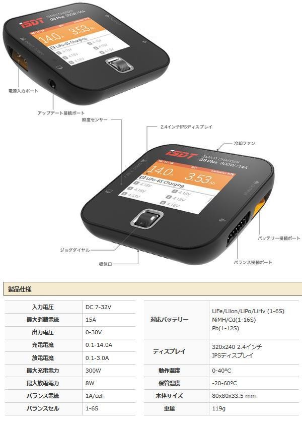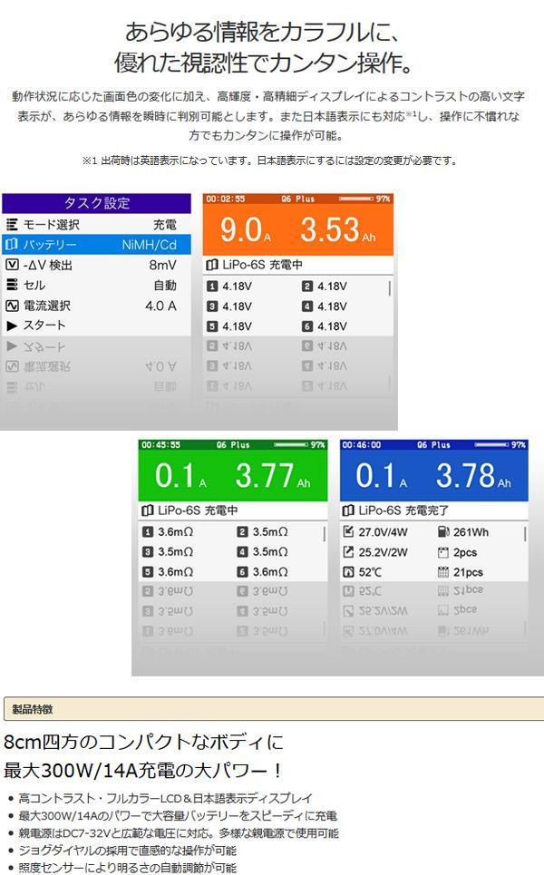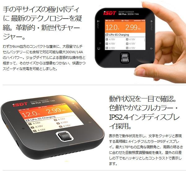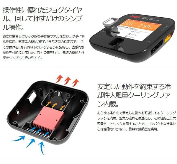 | コンパクトなボディながら、最大300W/14A充電の大パワーで大容量バッテリーをスピーディに充電できます。ジョグダイヤルの採用で直感的な操作が可能です。 |