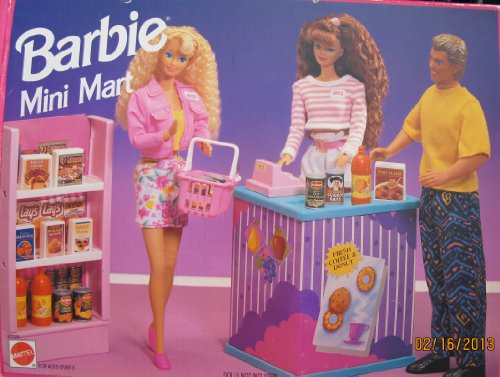 -. Feature : Barbie Mini Mart Playset is a 1993 Arcotoys, Mattel production. Box approx. 13" x 10" x 2.5". / INCLUDES: Shelving Unit, Check Out Counter, Cash Register, Pretend Canned Goods, Pretend Boxed Food Items, Soda Bottles, Instructions. / UNASSEMBLED. Playset intended for Barbie & Other 11.5" fashion size dolls; NO DOLLS included. Playset can be used with other size dolls, as preferred. / For Ages 3+ Years. All sizes, colors & details are provided to the best of my ability & may not be exact & may vary. / *Set NEVER USED. BOX OPENED 1 FLAP. For Box Condition see CONDITION NOTE or Email Seller for Details.