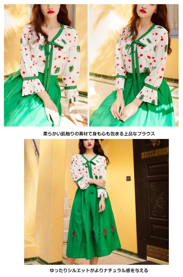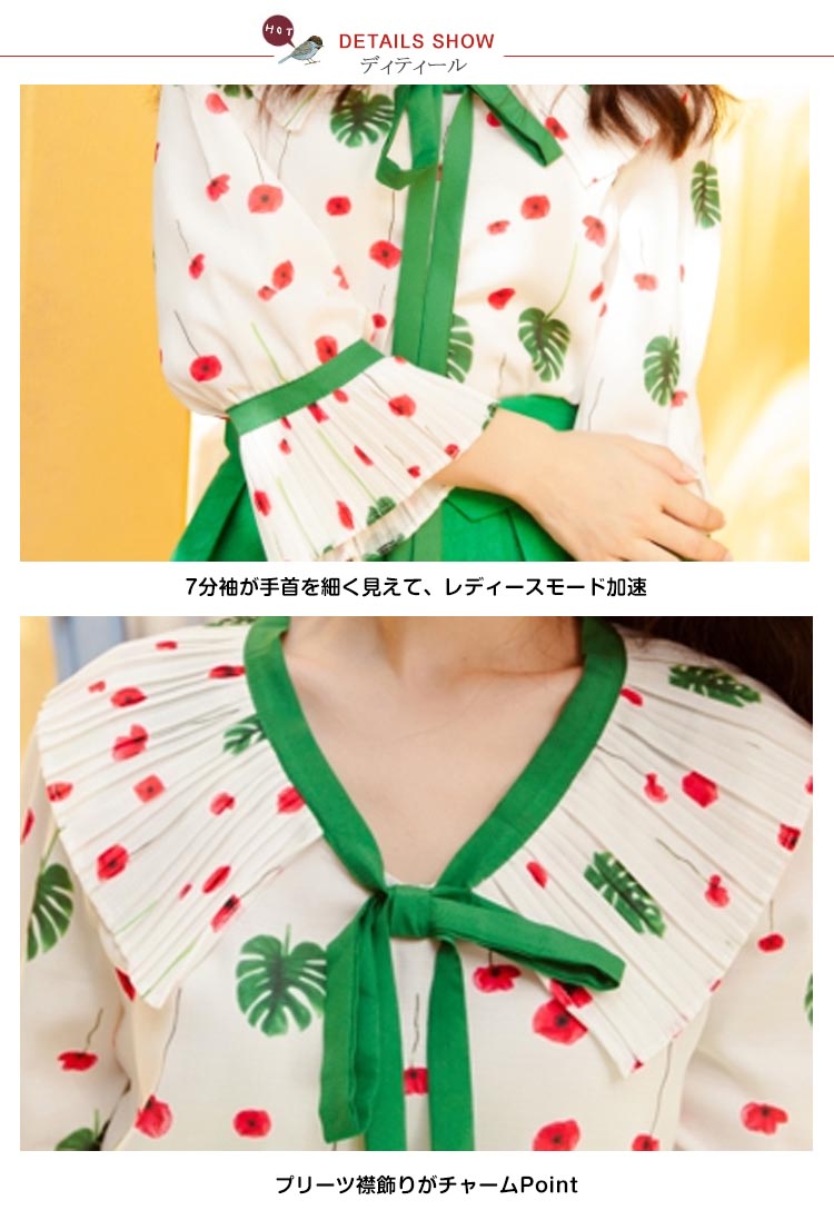 | プリーツ襟飾りが可愛いブラウス♪プリーツデザインの襟がとってもキュートで、大人可愛い取り外しによって、コーデの雰囲気も一気に変わり柔らかい肌触りの素材で身も心も包まる上品なブラウスゆったりシルエットがよりナチュラル感を与える | |