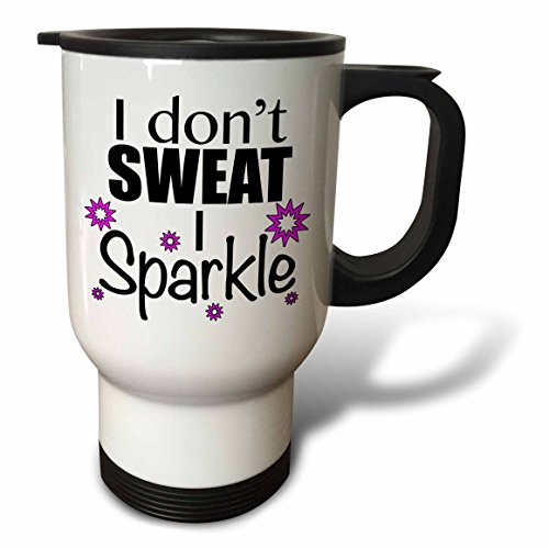 3dRose tm_171953_1 I Don't Sweat I Sparkle, Pink Travel Mug, 14 oz, White