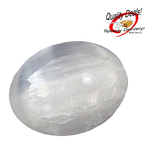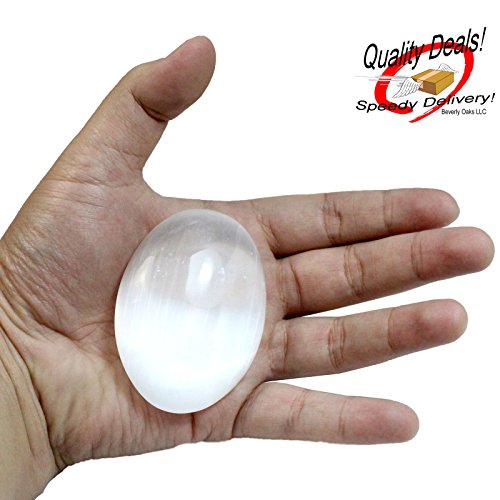 1 (One) Large Crystal Selenite Spiritual Healing Massage Palmstone with Certificate of Authenticity Beverly Oaks Exclusive. Average size is 70mm in length and 50mm in Width. A Beverly Oaks Exclusive Supplier Item. Each piece is chosen at random For Meditation, healing, enhancements and other spiritual practices. Selenite has many wonderful properties such as providing mental clarity, increasing heightened awareness of self and of ones environment. Opening doors to allows one to see inner truth. Promotes success in business and assists in accessing past lives.