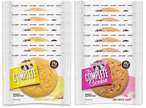 (Lenny Larry's)/Sports Nutrition/Healthy Snacks Beverages/DIRECT FROM USA/Lenny Larry's The Complete Cookie - 6 Lemon Poppy Seed and 6 Birthday Cake (Pack of 12)