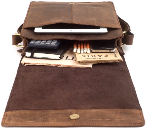-. Feature : Highlights: genuine buffalo leather - Top quality - Classy, unisex vintage look / Features: thanks to the fine stitching and the excellent manufacturing, this genuine leather bag is a stylish and loyal companion for your everyday life. / Measurements (L x W x H): approximately 10,2 x 12,2 x 3,1 in / This shoulder bag is incredibly roomy. The many pockets and a large main compartment offer plenty of space to carry your belongings. / Ideal comfort: the shoulder strap is reinforced by a strong nylon lining, which makes the bag more comfortable to carry.