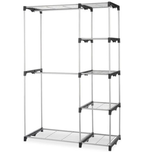 -. Binding : Kitchen -. Brand : Best Home Products -. Color : Sliver -. EAN : 0755263665007 -. Feature : Get organized with free-standing closet, featuring dual hanging rods and 5 shelves / Center hanging rod is removable for longer garments / Easy to assemble; measures 45 by 19 by 68 inches (WxDxH) / Sturdy silver coated steel frame with durable resin connectors / Hanging rods support full-sized jackets as well as fabric shelf towers -. IsAutographed : 0 -. Label : China -. Manufacturer : China -. Model : WS-G4568-Sliver -. MPN : WS-G4568-Sliver -. PackageQuantity : 1 -. PartNumber : WS-G4568-Sliver -. ProductGroup : Home -. ProductTypeName : HOME -. Publisher : China -. Studio : China -. Title : Closet Organizer Storage Rack Portable Clothes Hanger Home Garment Shelf Rod -. UPC : 755263665007