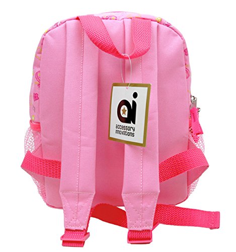 Studio : Accessory Innovations Publisher : Accessory Innovations Binding : Toy Product Description 1 main zipper compartment 2 front zipper compartment Adjustable padded shoulder straps 2 side mesh pockets Handle at the top Colors: Pink Backpack Dimensions: 8" W x 4" D x 10" H 0