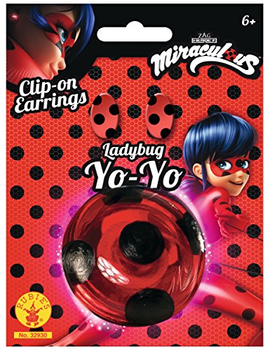 From Tales of Ladybug and Cat Noir, officially licensed Miraculous Ladybug Yo-Yo and Clip-On Earrings. Costume play lets children stretch their creative muscles while having fun! As the world's costume leader, Rubie's Costume Company takes seriously the mission to make dressing up fun! Mascots, rental quality costumes, masks, wigs, accessories, shoes, and every significant licensed costume you would ever want to wear can be found under the Rubie's brand. Still family owned and family focused, Rubie's brings you fun for every season: Halloween, Christmas, Mardi Gras, Easter, and all in-between!.Feature