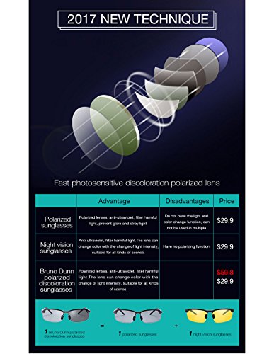 Studio : china Publisher : china Product Description 【Discoloration HD POLARIZED LENS】-- 100% UV400 protection coating, blocks 100% harmful UVA UVB Rays. Polarized sunglasses reduce glare reflected off of roads, bodies of water, snow, and other horizontal surfaces. Restore true color, eliminate reflected light and scattered light and protect eyes perfectly. Polarized sunglasses cut glare and haze so your eyes are more comfortable and you can see better. 【ALUMINUM MAGNESIUNM METAL ALLOY】 -- makes frame Strong and light.The Sunglasses only 21g, You can hardly feel them on your face, but they are unbreakable. Best for Motorcycle.And Cycling Bicycle, Driving, Running, Fishing,Racing, Skiing and Climbing, Trekking Or Other Outdoor Activities Enthusiasts. 【PERFECT TO FIT YOUR FACE】--Aluminum-magnesium metal frame, can be adjusted to fit your size,so does Nose Pad. 【SOFT AND ADJUSTABLE RUBBER NOSE PAD,SUPERLIGHT, STYLISH, DURABLE】 -- fashion lines design features create aesthetically pleasing appearance. 【Bruno Dunn WARRANTY】-- Lifetime Breakage Warranty on Frame Lens and 30 Day Money Back Guarantee, Customers can return and get full refund in case the purchasing is not satisfactory for any reason,and reach us through message.You have no risk to try and We will reply you within 24 hours! 0