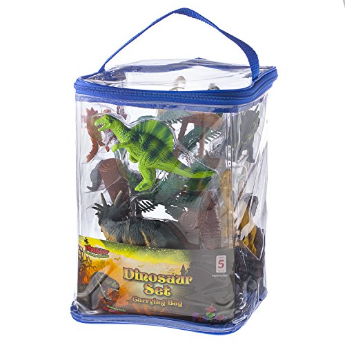 -. Feature : Massive set of 23 pics, includes 6 Jumbo Dinosaurs, / 7 baby Dinosaurs, one big plastic stone and 5 smaller once, / 2 big trees, and 2 tree stumps, packed in a great bag with handle, / Great assortment your kids will love it !!!...
