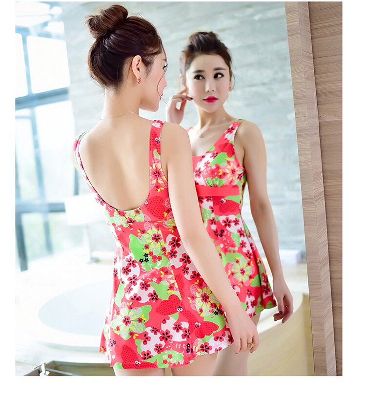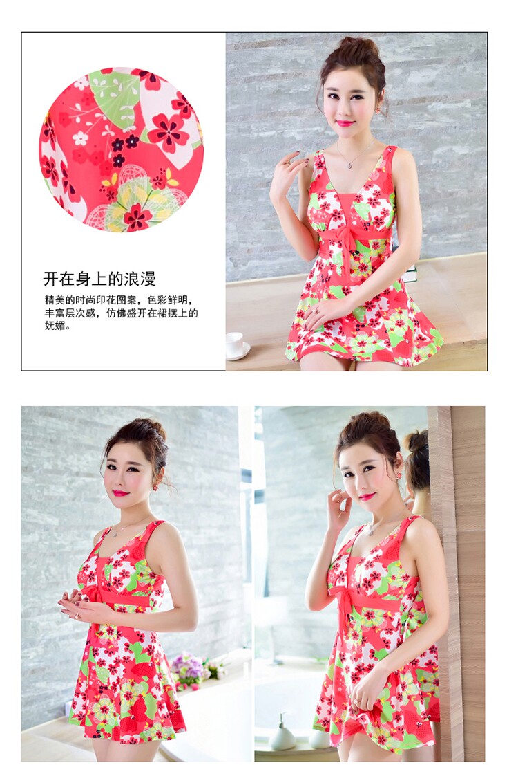 新款泳衣女大码裙式连体保守泳装大小胸聚拢显瘦遮肚泡温泉泳衣