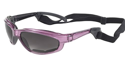 Pacific Coast Chix Freedom Padded Riding Sunglasses with Detachable Strap (Pearl Purple Frame/Grey Fade Lens)