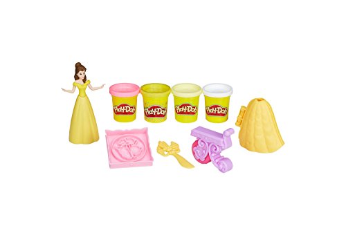 Join Belle and all of her friends for a delightful pretend dinner party, Play-Doh style! Get Belle ready for the occasion by creating her ball gown with the book-mold. Make it glitter with the included Play-Doh sparkle compound! Create make-believe banquet snacks and accessories with the tray, then pop it on top of 1 of the 4 Play-Doh cans to double as a table. Decorate for the party by rolling out lovely ribbons with the teacart, which also stamps out Mrs. Potts and Chip. Lumière is also here to help decorate with his half-mold and knife accessory! Hasbro and Play-Doh all related properties are trademarks of Hasbro. Copyright Disney.Feature