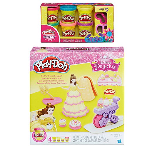 Bundle of 2 Items - Play-Doh Be Our Guest Banquet Featuring Disney Princess Belle + Play-Doh Sparkle Compound