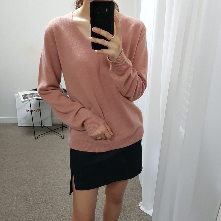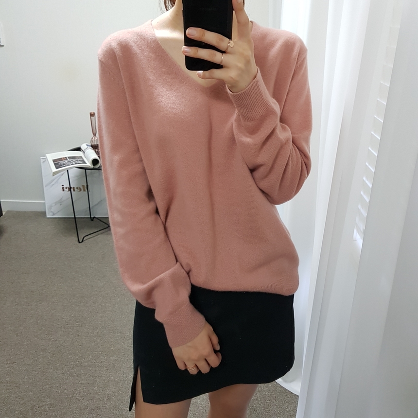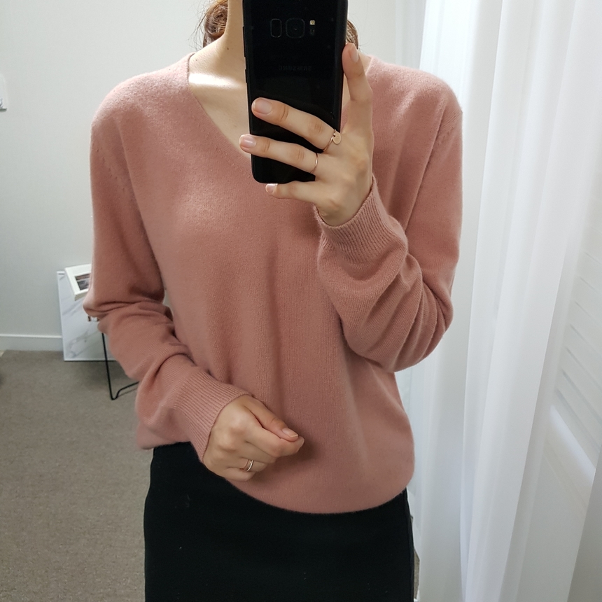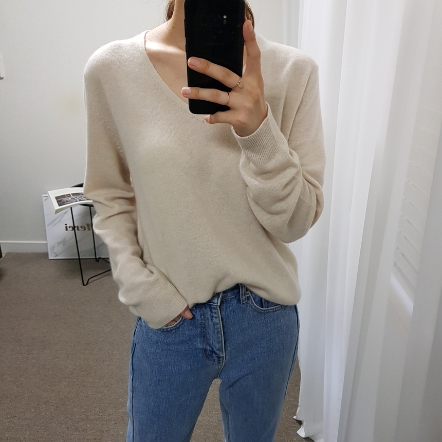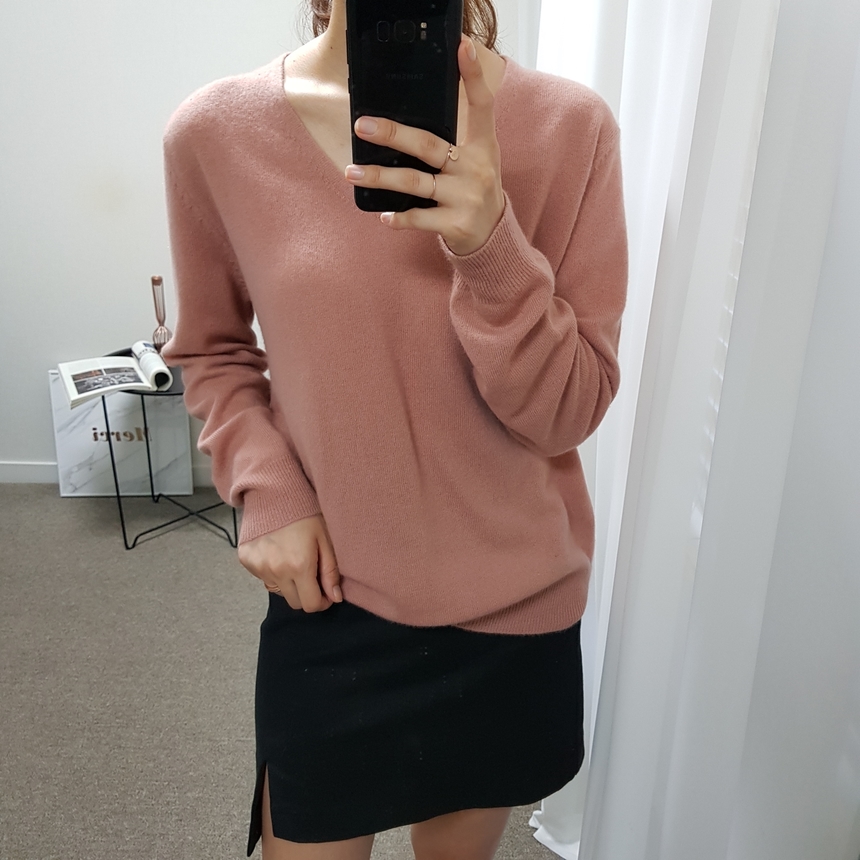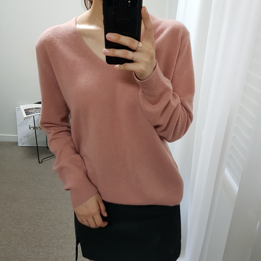 Simple V-neck Fall Wool Knit Noodle Women Cashmere T-shirt Holgate Gentleman Basic