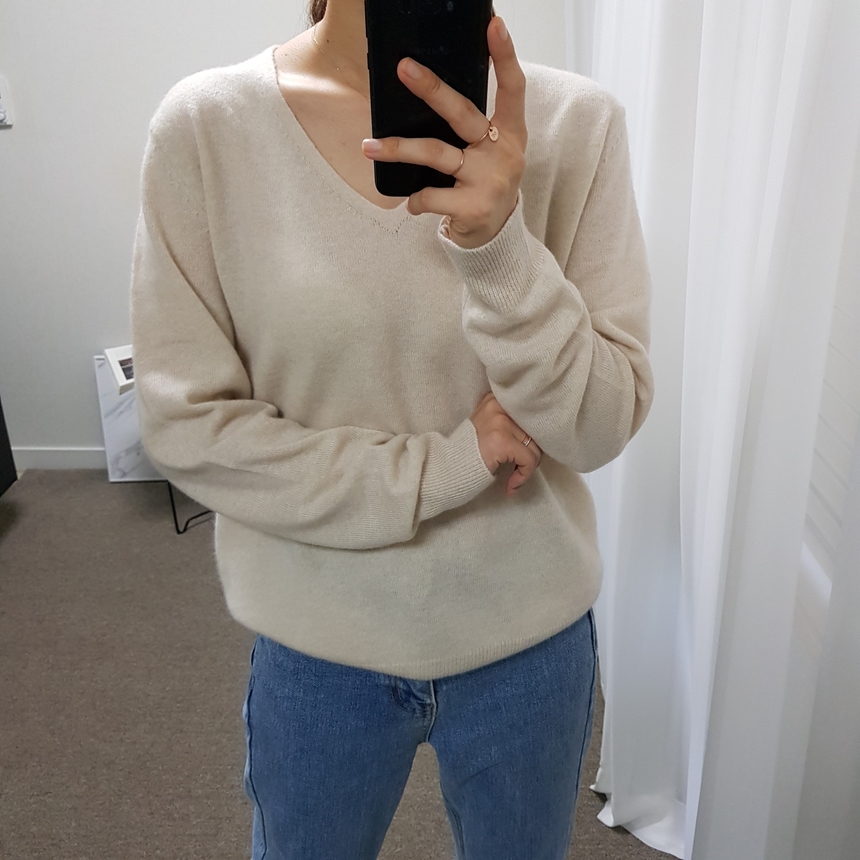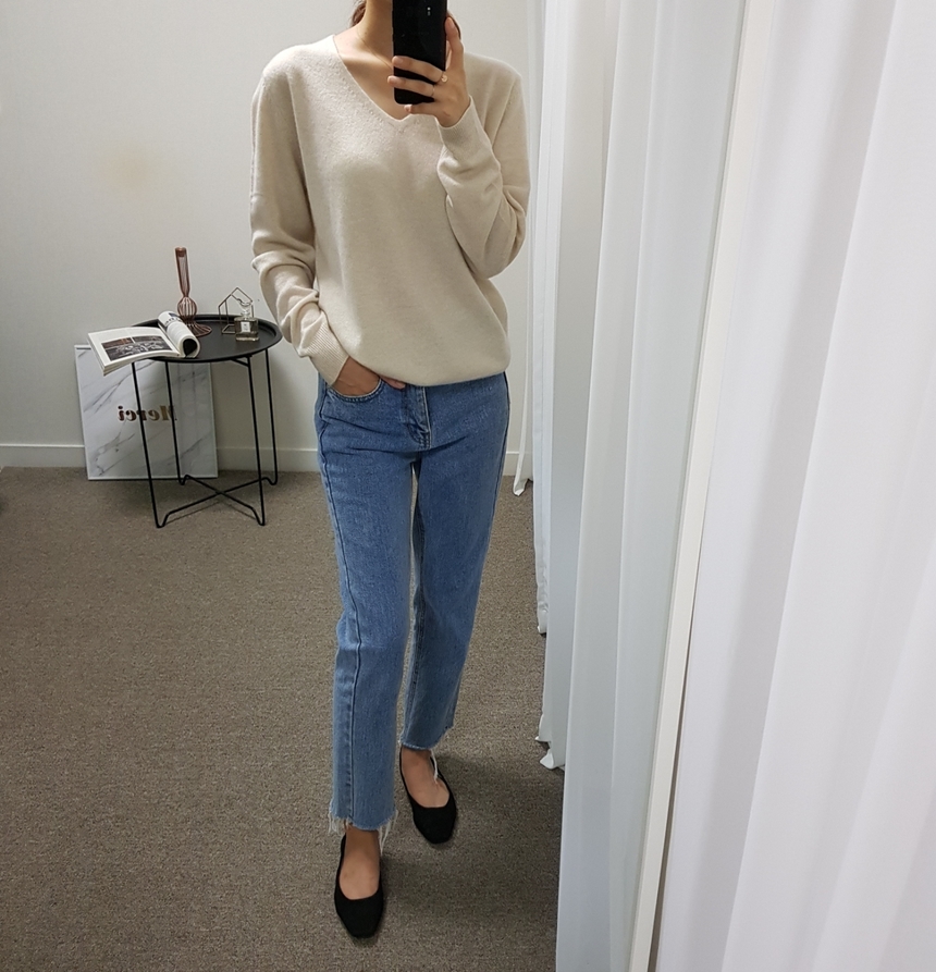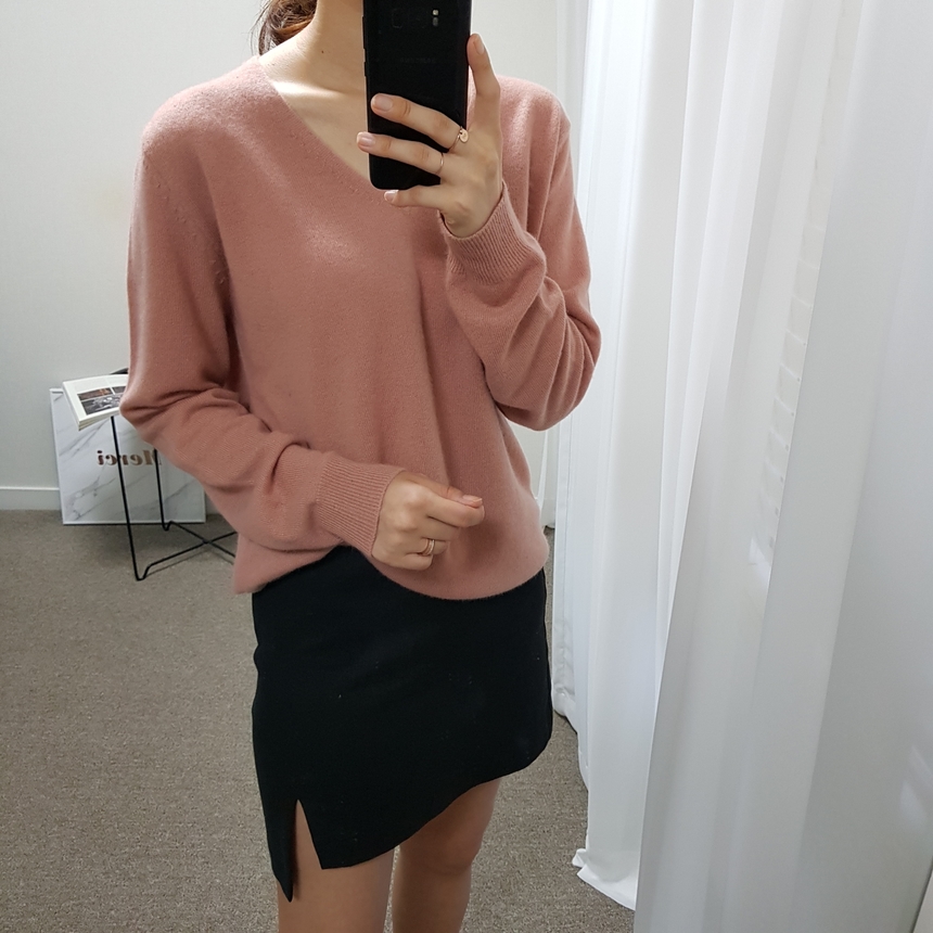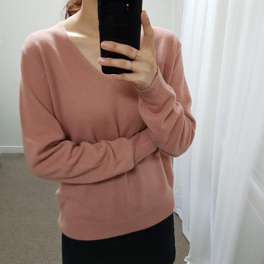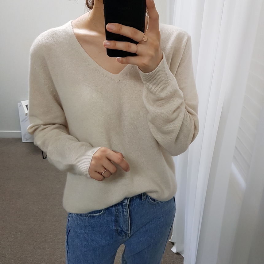 Simple V-neck Fall Wool Knit Noodle Women Cashmere T-shirt Holgate Gentleman Basic
