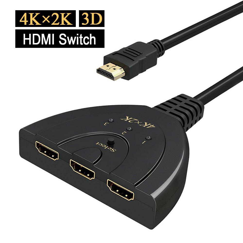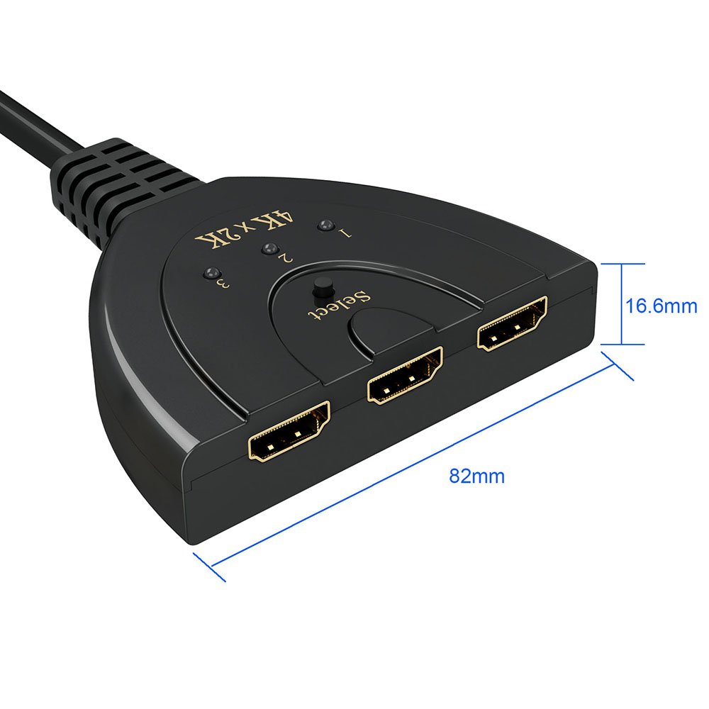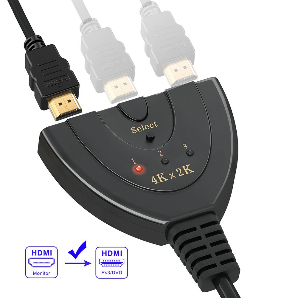 ● 3-input 1-output HDM switcher compatible with HDMI signal with maximum resolution of 4 K 2 K (4096 × 2160) @ 30 Hz that can switch 3 HDMI devices to a single TV.
