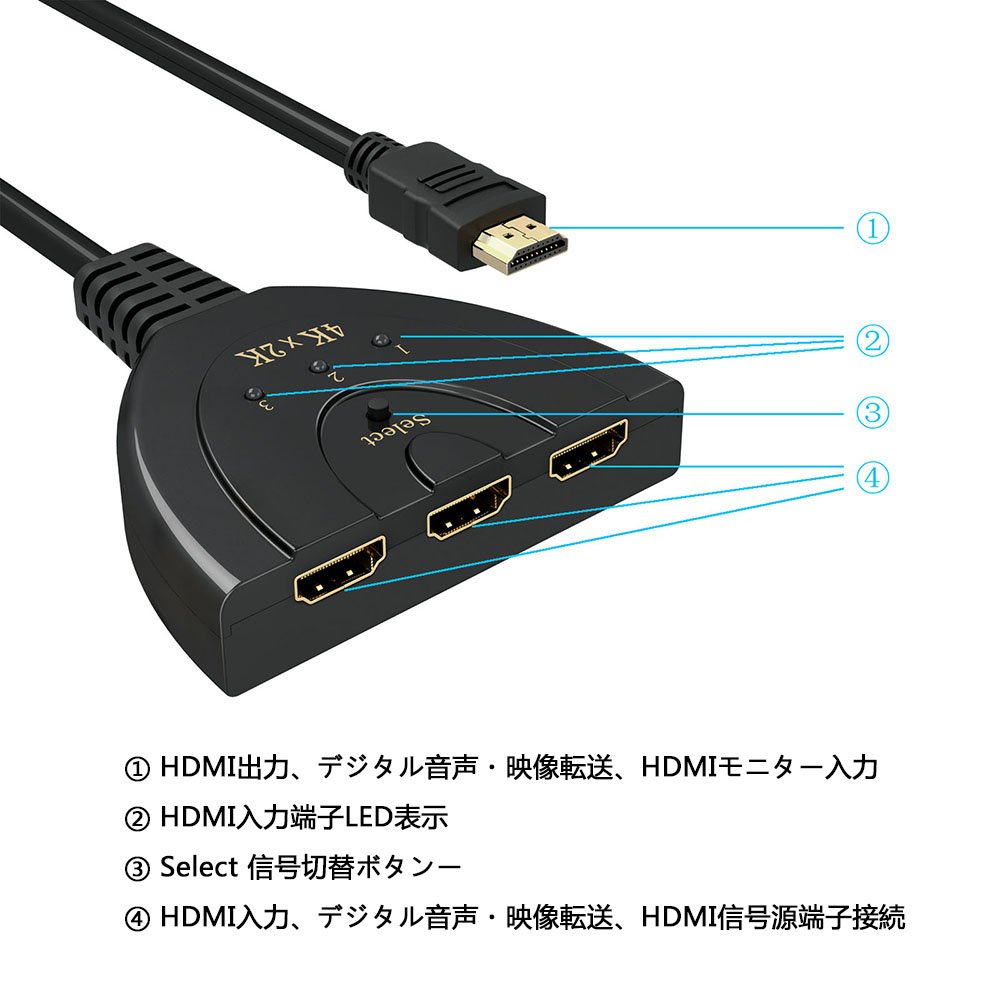 ● HDMI switch This is an HDMI selector that can easily switch and output the video and audio of one set to one 4K display, 4K projector, etc.