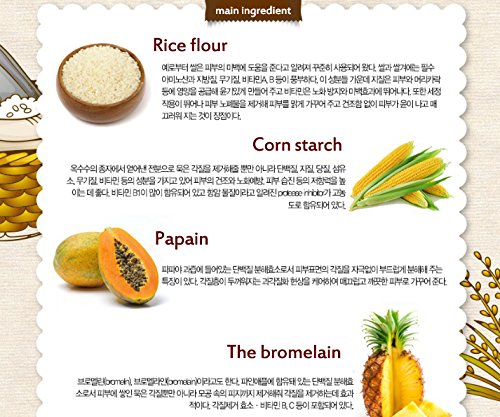 -. Feature : Smart scrub that removes dead skin cells derived from natural grains made of clear skin! / Rice makes a cleansing scrub and massage at once.
