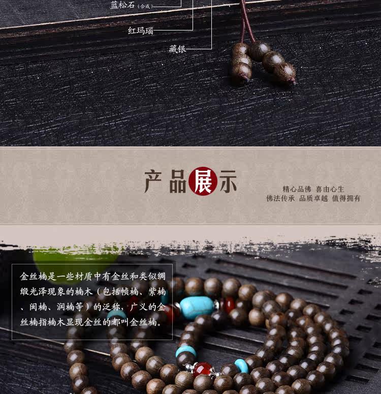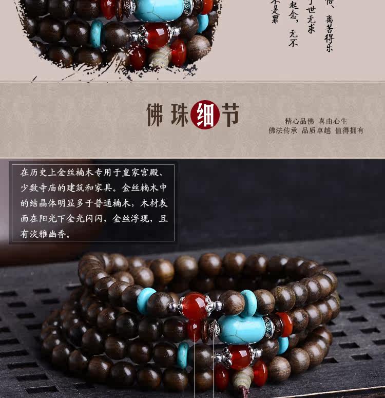 开光金丝楠木手串 金丝楠手串 乌木阴沉木佛珠 男女手链108颗