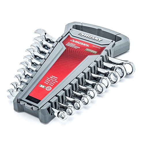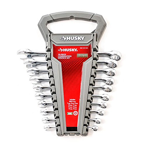 Husky Metric 10-Piece Combination Wrench Set, Chrome with Storage Rack Carrier