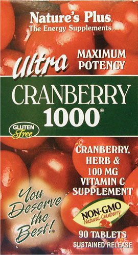 -. Binding : Health and Beauty -. Brand : Nature's Plus -. EAN : 0097467039537 -. Feature : Designed for sustained release to maximize bioavailability / Supplies 100 mg of Vitamin C / Provides a highly active herbal base for maximum result -. IsAdultProduct : 0 -. Label : Nature's Plus -. LegalDisclaimer : non-returnable -. Manufacturer : Nature's Plus -. MPN : B001VYO95G -. PackageQuantity : 90 -. PartNumber : B001VYO95G -. ProductGroup : Health and Beauty -. ProductTypeName : HEALTH_PERSONAL_CARE -. Publisher : Nature's Plus -. Size : 90 -. Studio : Nature's Plus -. Title : Nature's Plus Ultra Cranberry -- 1000 mg - 90 Tablets -. UPC : 097467039537