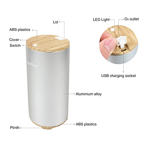 Finether Air Purifier Portable Ozone air cleaner Sterilizer Deodorizer hepa filter for travel Car Home Office|USB Charge(Silver)