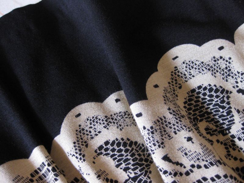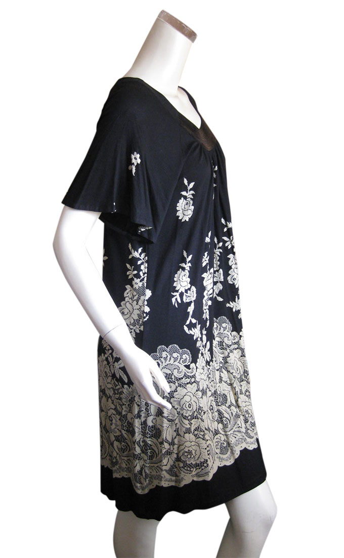 ほっそりと美しくみえるよう工夫されたレース柄のパネルプリント。