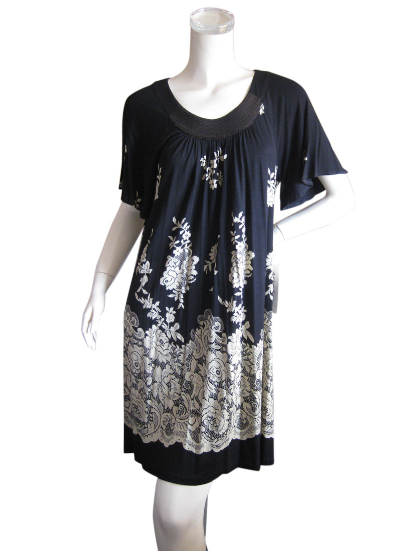 フラワーレースプリント ストレッチカットソーワンピース 11号