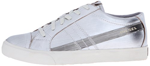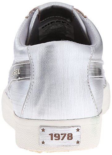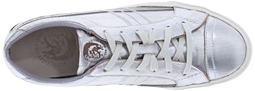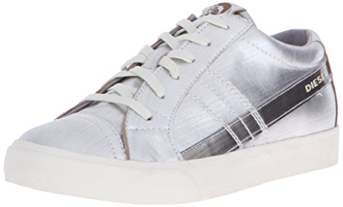 Diesel d-velows d-string mid lace leather sneaker with lateral zipper for easy wear ability.