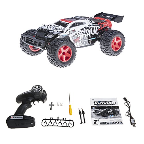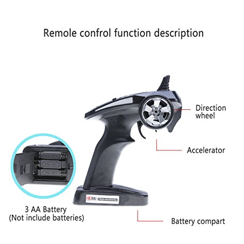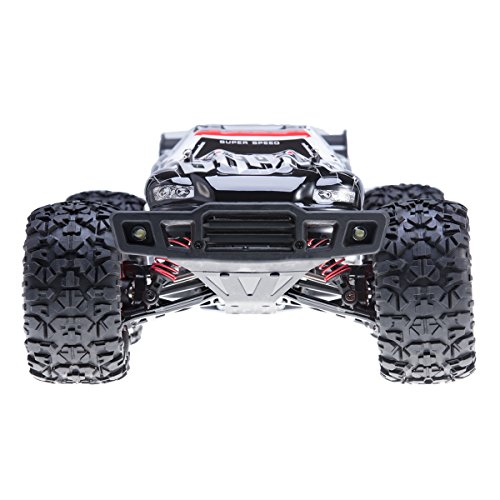 390 class big power motor. 220 A class electron stepless speed controller. 4WD driven all time. Front/rearwheel driven all setup pulverous alloy adding rigidity differential gear. The mode of hydraulic pressure aluminum alloy shock absorber. Antiskid and abrasion proof rubber tire. Specifications: Frequency: 2.4GHZ Body Materials: Shock-resistant PVC, ABS Plastic, Electronic Components Controller mode: Left/right hand throttle Suitable ages: 10 Ages Power Capacity: 7.4V 1500mAh Li-ion battery(included) Charging time: About 180 minutes Playing time: About 15 minutes Package Included: 1x RC Car 1x USB Charger 1x Rechargeable Battery 1x Screw driver 1xCross wrench 1xDamping ring 4XR Clips 0