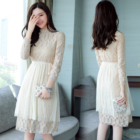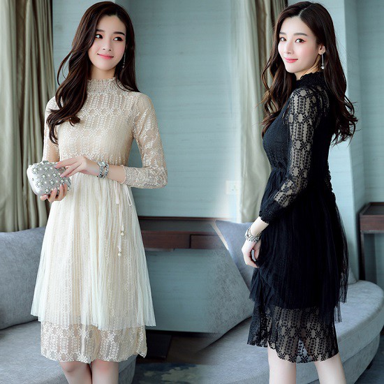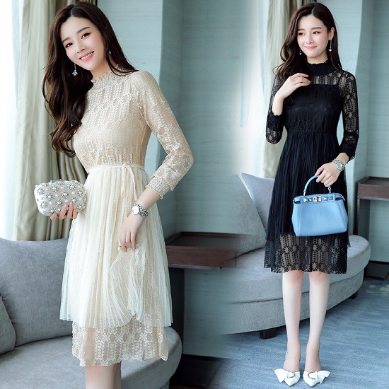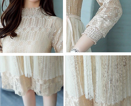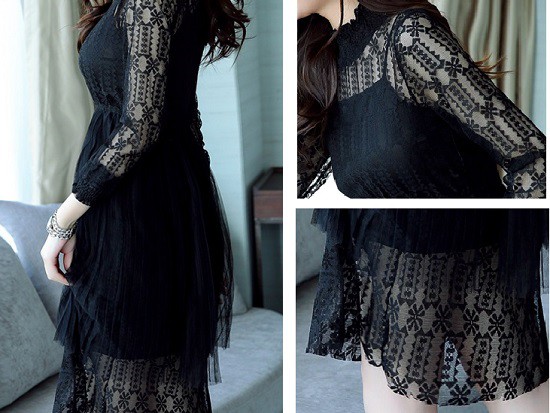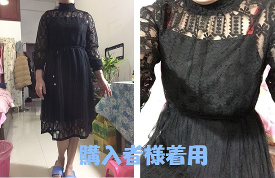 花柄刺繍が入ったシースルーの膝丈ドレス。