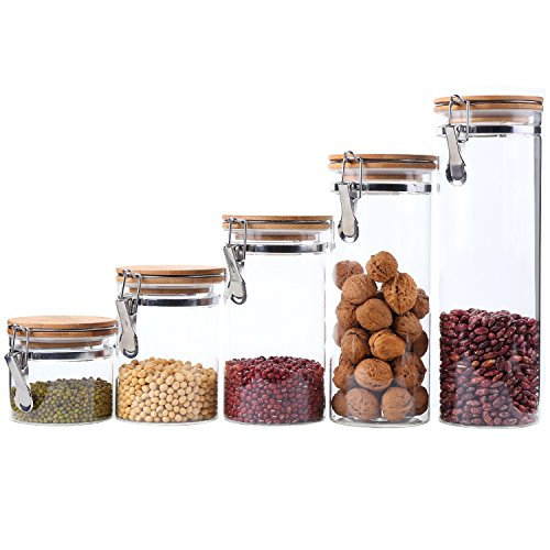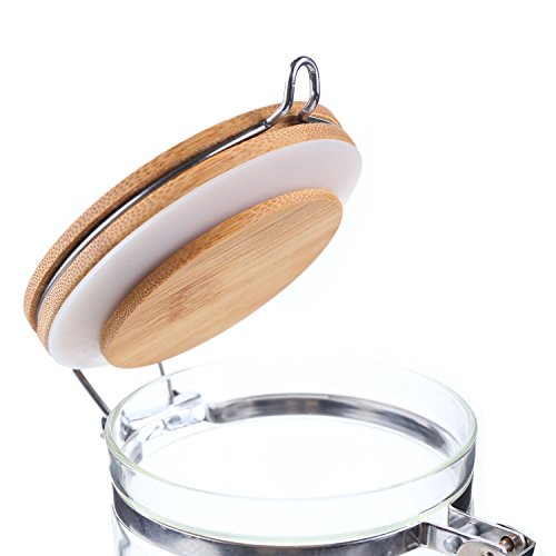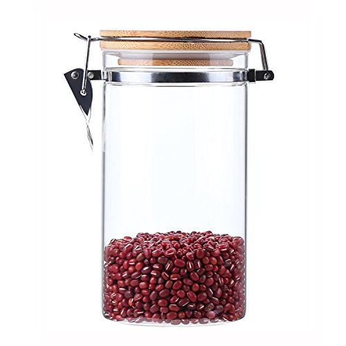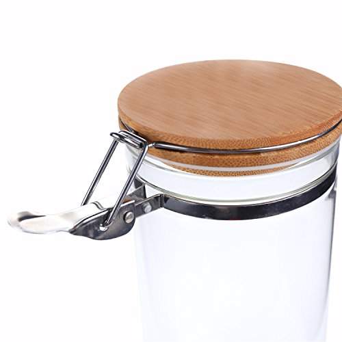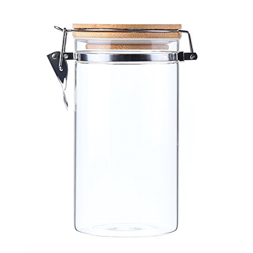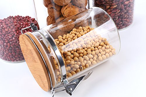 AUYE Glass Storage Jar,Coffee Bean & Kitchen food Container With Clamp Airtight wood Lid (40-Ounce)