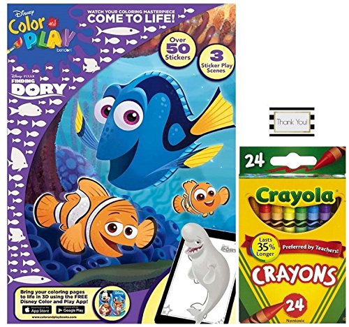 Feature : Coloring Book has 98 Coloring and Activity Pages Featuring characters from Finding Dory / Download the FREE App and Watch Your Creations Come to Life! / Over 50 Stickers and 3 Full Color Sticker Scenes / 24ct Non Toxic Crayola Crayons / Includes FREE Thank You card brought to you only by Chicago Products Direct
