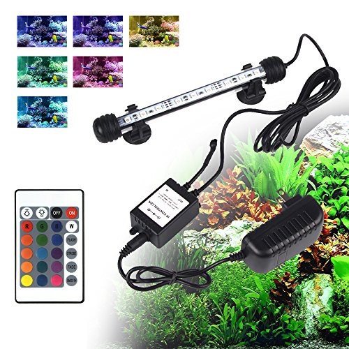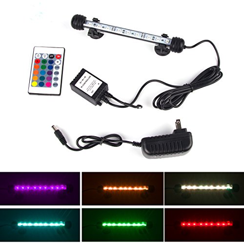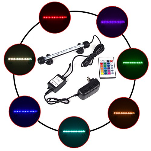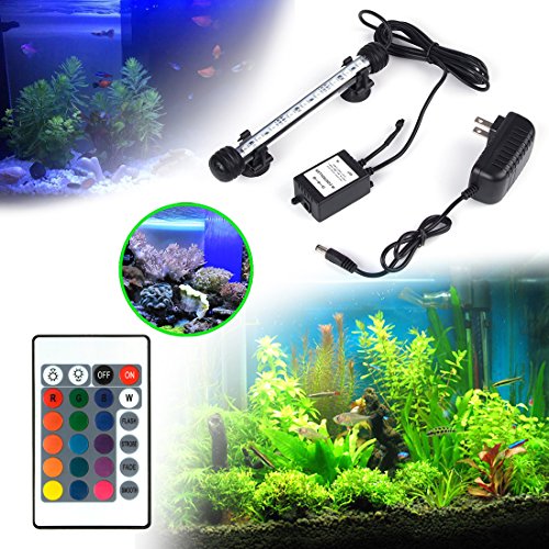 - Colorful LED Lights --- Use of 9 RGB LED lights with 16 color 4 modes and controled by wireless remote, can make your fish tank a colorful landscape. The 7.5 inch length lights fitting aquariums widths of 7.7-15 inches.