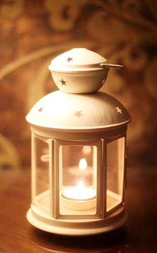 Ryocas Decorative Candle Lantern - Vintage/Retro Style Hexagon White Carved with Glass, 7-Inch