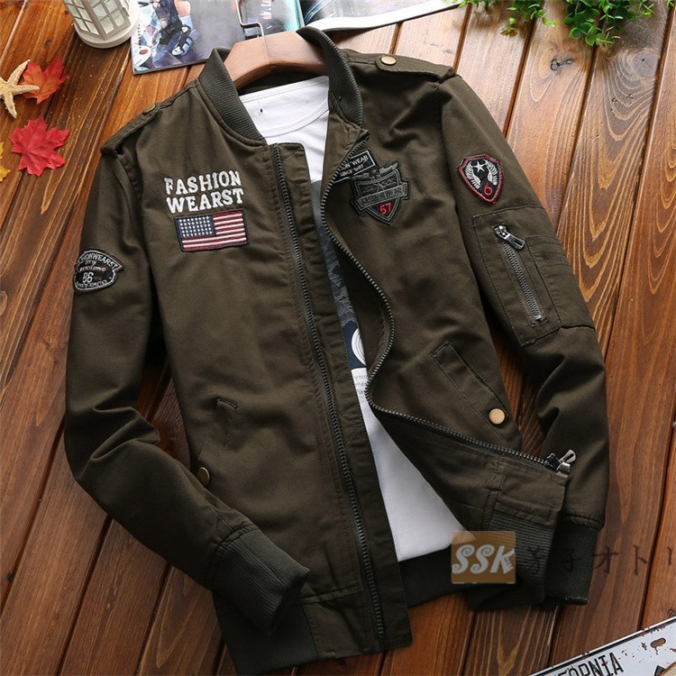 ミリタリージャケット メンズ ブルゾン 長袖 ジャケット ロゴ アウター ミリタリー カジュアル 2018秋冬 新作