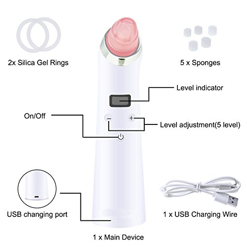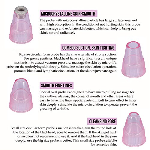 【Strongest Suction&4 removable probes】:This facial pore cleaner has 5 suction level and 4 removable probes with different intensity of suction, you could choose it to remover blackhead or other blemishes and facial skin problems properly according to your own needs.