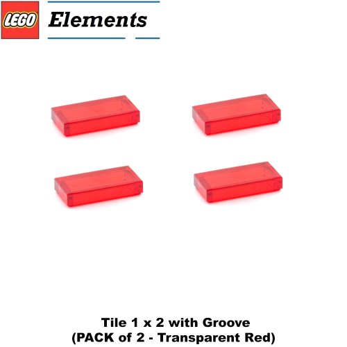 -. Title : L.E.G.O Parts: Tile 1 x 2 with Groove (PACK of 4 - Transparent Red)