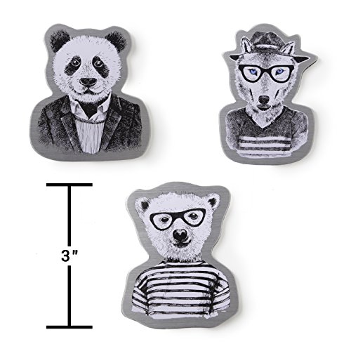 Premium Quality Aluminum Refrigerator Magnet Gift Set by Real Cool Vibe Featuring a Collection of Hipster Animals