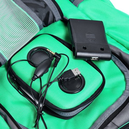 New Style Pale-green and Gray Mp3 Boom Speaker Backpack with a Black Battery Cover