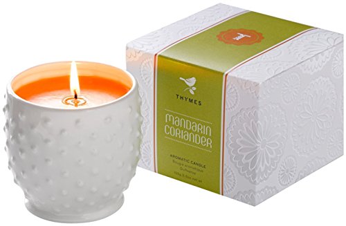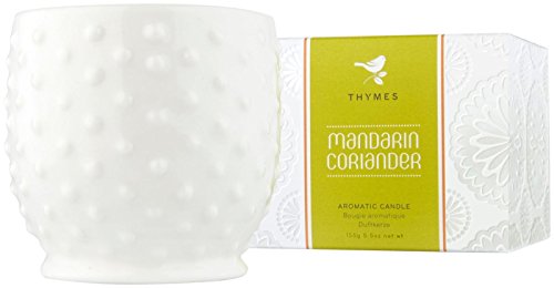 Studio : Thymes Publisher : Thymes Binding : Kitchen Product Description Crisp and clean, this long-lasting scented candle layers your surroundings in the fresh, bright citrus scent of Mandarin Coriander. Comes in a charming hobnail container, made of glazed white ceramic. Light often to spread a sense of inviting freshness throughout your home. An ideal gift for housewarmings, hostess gifts, holidays or other occasions. 0