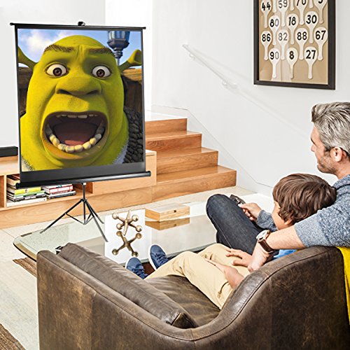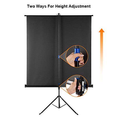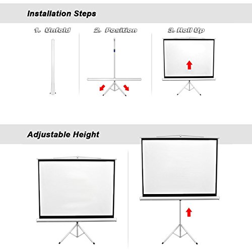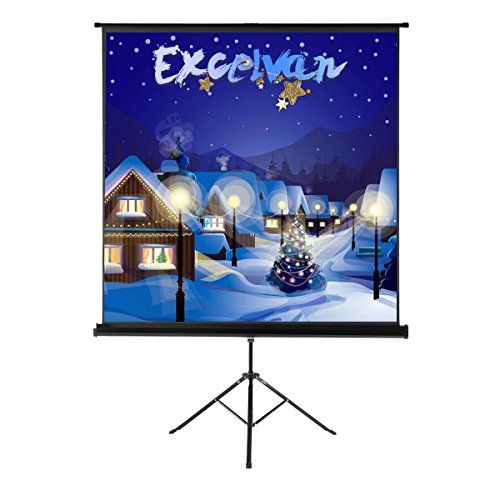 Studio : Excelvan Publisher : Excelvan Binding : Office Product Product Description Description Excelvan 70" x 70" 1:1 portable projector screen with stand tripod is a perfect mobile projection solution for professional or personal projection needs, it is designed for easy setup and fast take down, which allowing you to transport and store your screen anywhere. It's available for home theaters, meeting rooms, classrooms and even outdoors like camping.
