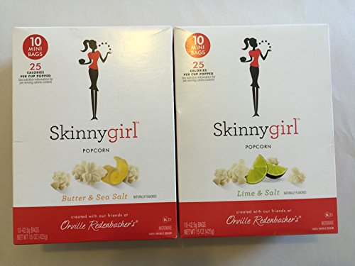 Skinny Girl Popcorn Variety 2 Pack: Lime & Salt and Butter and Sea Salt 10 Mini Bags of Each Flavor