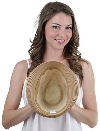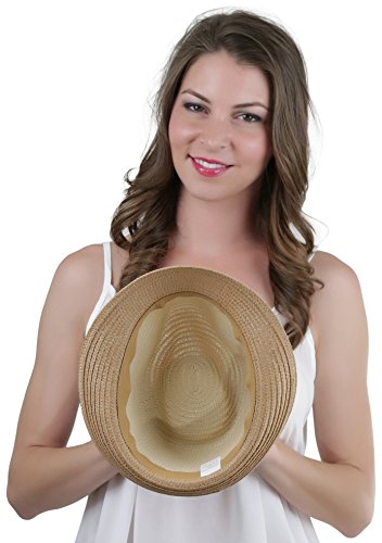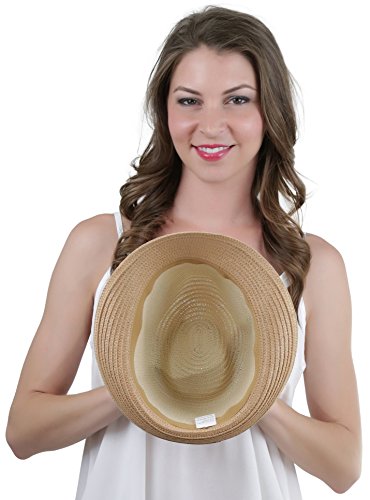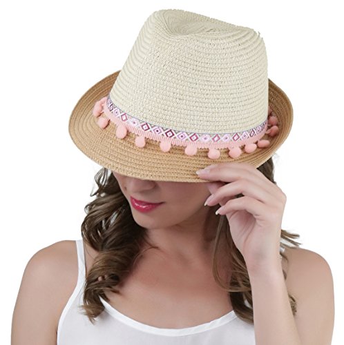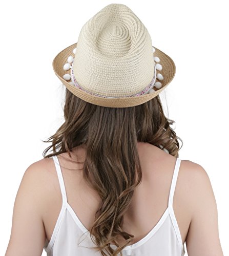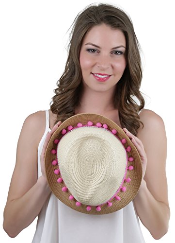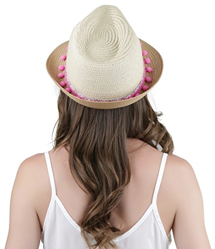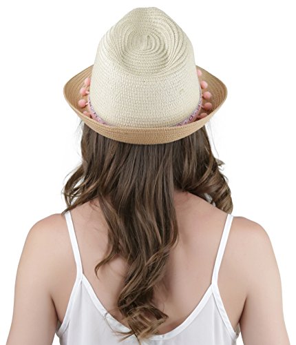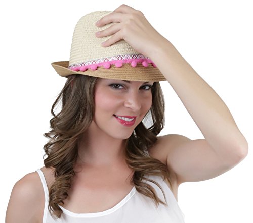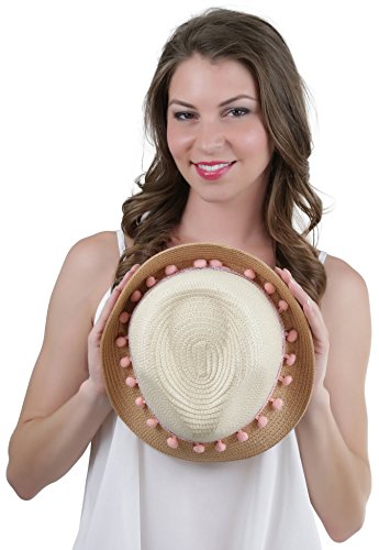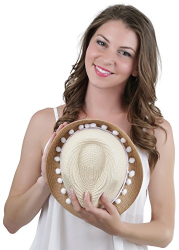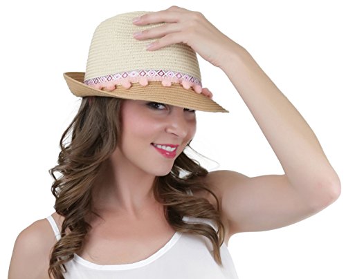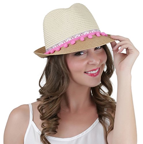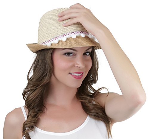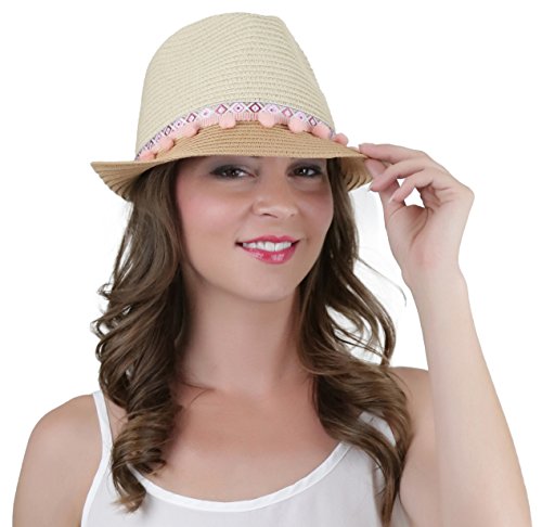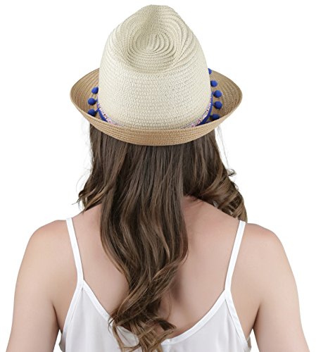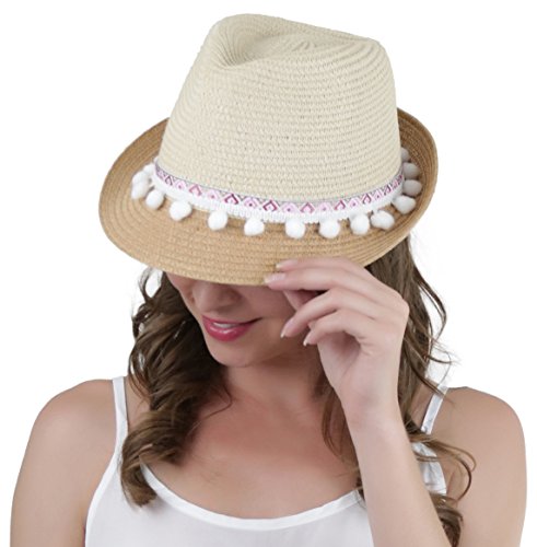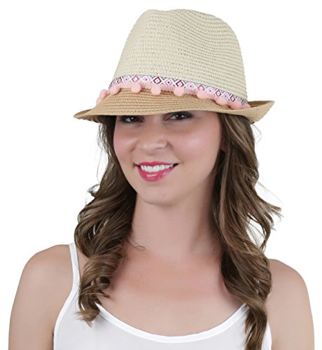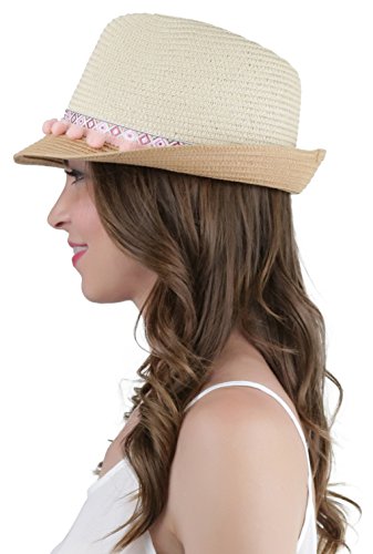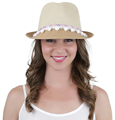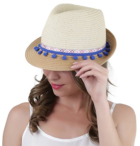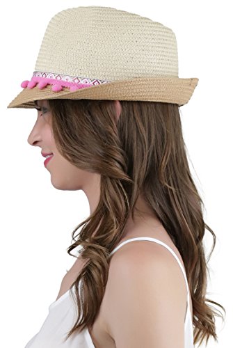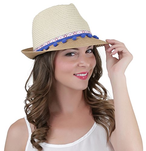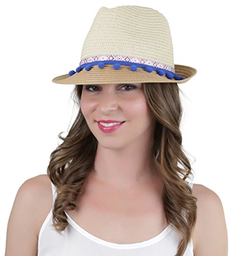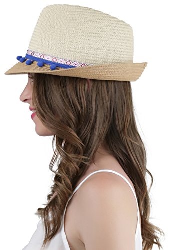 | ToBeInStyle Women's Diamond Tribal Ribbon Cotton Ball Contrast Color Brim Fedora |