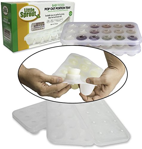Baby Food Storage Tray with Removable Easy to Portion Silicone Liner (Set of 2) - Breast Milk and Food Storage Made Easy: This set of two baby food portion trays is the perfect solution for storing homemade baby food or breast milk. Each cup holds 1 ounce and there are 18 cups per tray. The removable silicone liner allows you to easily pop out frozen portions for reheating, while the plastic base provides a durable base for easy stacking. These trays are dishwasher, microwave, and freezer safe. They are also safe for baby because they are 100% BPA and phthalate free. The snap on lid keeps portions fresh.