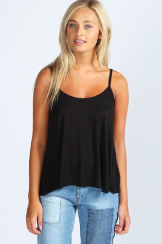 | (FOREVER)/Women/Outerwear/DIRECT FROM USA/Forever Womens Sleeveless Plain Viscose Jersey Swing Cami Ves t Top |