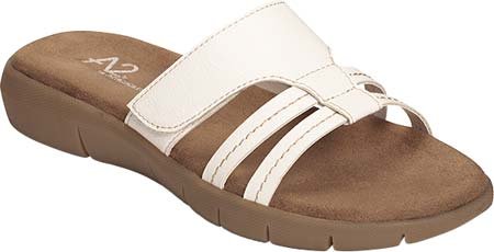 A2 by Aerosoles. No fuss doesn’t have to mean no style. This streamlined flat slip-on sandal, the kind you'll wear with everything this season, has a chicly designed upper that complements all of your looks. And your feet will thank you for treating them to our memory foam footbedFeature