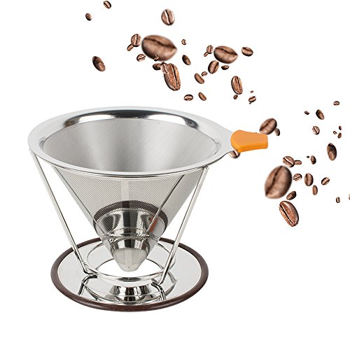 -. Brand : Vinmax -. Color : Silver -. EAN : 0192240004945 -. Feature : 【TOP QUALITY MATERIALS】Our fine mesh dual stainless coffee filter is made of the highest quality stainless steel without using paper filters; its reinforced steel mesh is extra durable, allowing brewing at the perfect rate; the bottom base will stay on and not break; with the extra fine wire mesh at the lower part of the filter; no grounds end up in your cup / 【SIMPLE TO USE】Being compact and lightweight, the coffee drip cone works great at home or work or while traveling or camping; simply heat the pour over coffee filter with hot water and rinse out, add coffee grounds, slowly pour in the hot water, let the coffee maker drip out the water through the fine pour over filter, and remove the coffee dripper when done, ready to enjoy your drink / 【LIGHT AND PORTABLE】No need for a coffee machine to have a decent cup of coffee on your home travels or office, you can take it where you want, to the office, on a camping, caravan or hotel trip. The built in stand is designed to fit on most cups, mugs, thermoses, small pots and even carafe. A perfect gift for the coffee lover in your life / 【SCALD-PROOF HANDLE DESIGNED】With a removable rubber grip and ring to help pour the hot water safely,easy to grip and can be removed easily for washing / 【EASY TO CLEAN AND NO USE OF PAPER COFFEE FILTERS】Once done using the coffee brewer, rinse it quickly by hand and immediately use it again for another flavor; since it is a reusable coffee strainer made from stainless steel, it is better quality than plastic, ceramic, or glass coffee filters, it saves you money not buying paper coffee filters -. ProductGroup : Kitchen -. ProductTypeName : KITCHEN -. Title : Vinmax Reusable Pour Over Coffee Filter, Cone Coffee Dripper Paperless, Double Mesh Pour Over Coffee Maker with Separate Standard 1-to-4 Set Cup Stainless Steel,Non-Slip Handle - Dishwasher Safe -. UPC : 192240004945