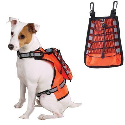 -. Feature : This bright Orange vest provides outdoor safety for your dog! / Metal D-Ring on back for leash attachment / Detachable drink holder pocket fits water bottles. / Size Large. / Reflective features put safety first.