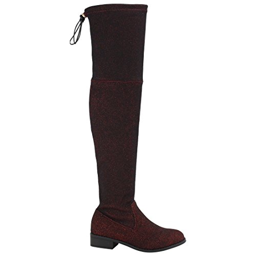 Product Description Wrap your legs in comfort and class with these over-the-knee boots.A functional self-tie detail at back for a flexible fit,stitching apron design,block stacked heel silhouette,glitter upper design and lightly padded lining completed all the look. 0