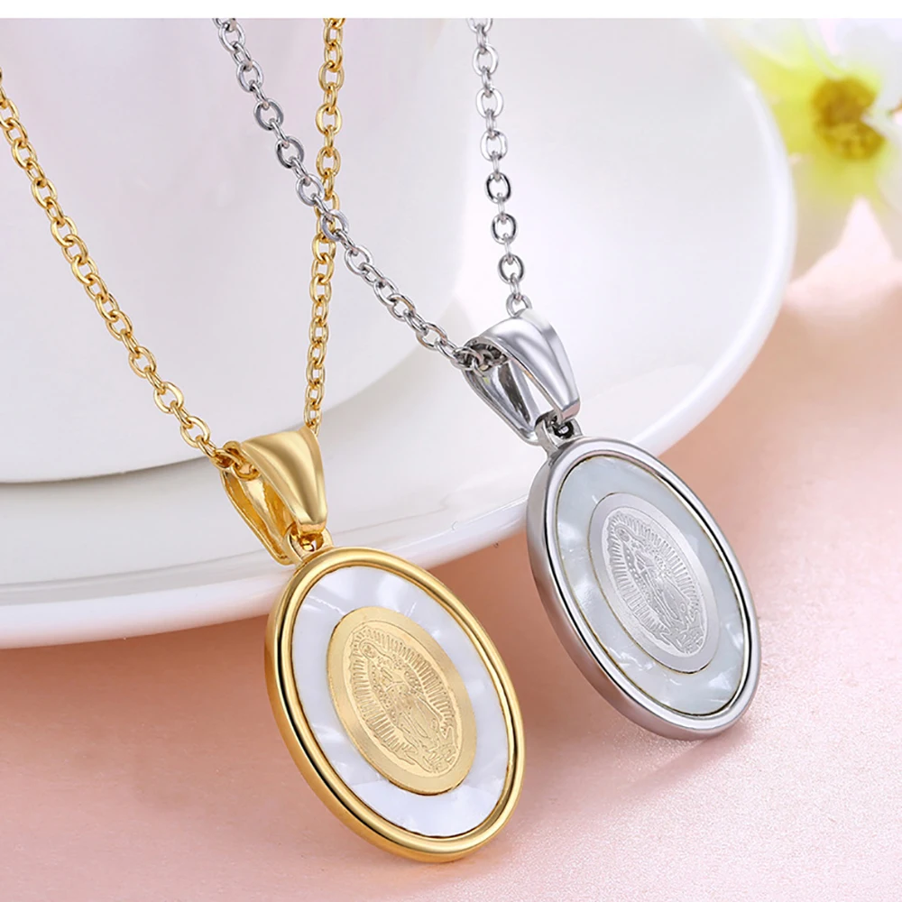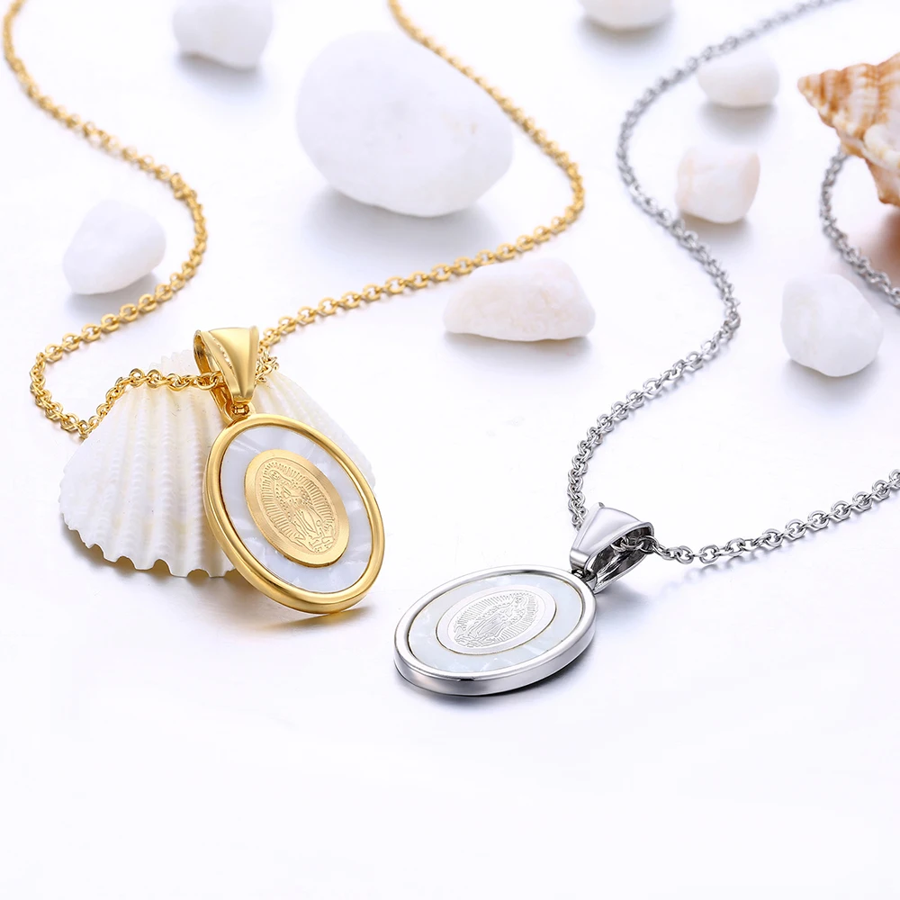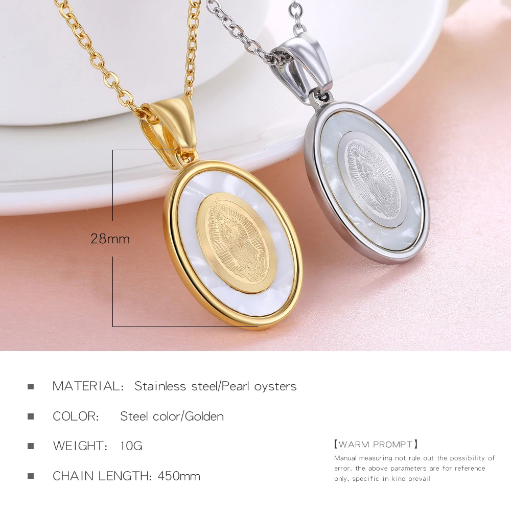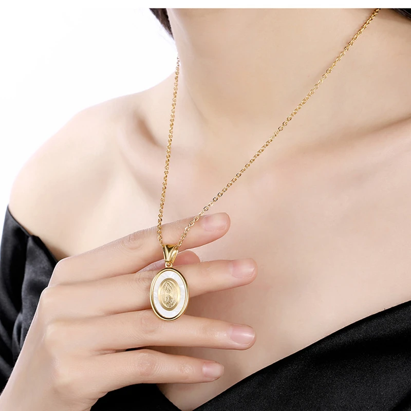 Design:Virgin Mary Oval Pendant Necklace